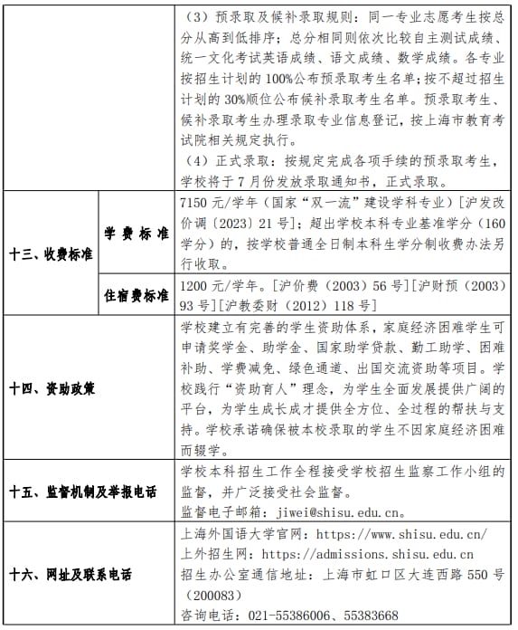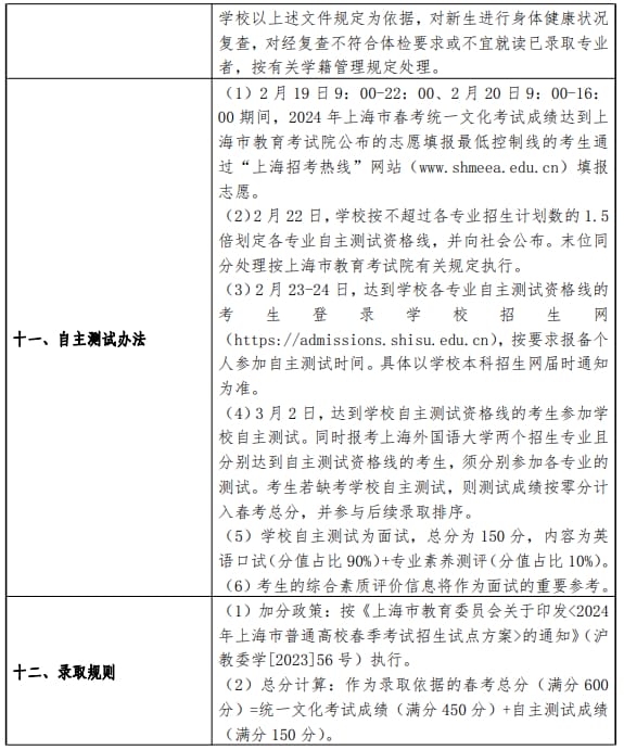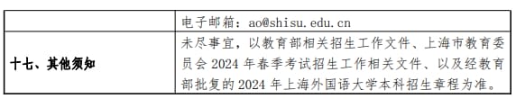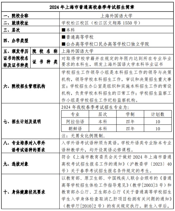 上海外国语大学2024年春季高考招生章程